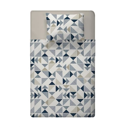 Jogo cama solteiro 3pc algodão 150 fios geo azul estamparia Informações do produto: jogo de lençol cama solteiro 3 peças estamparia 100% algodão 150 fios O jogo de cama é lindo, moderno e conta com qualidade impecável estamparia. O lençol de elástico ultra macio em padrão clássico fica ajustado ao colchão pois possui elástico a toda volta, ajudando a manter a cama sempre arrumada e proporcionando uma noite de sono agradável. Seu tecido 100% algodão garante durabilidade, muito conforto e maciez para suas noites de sono serem ainda mais agradáveis e tranquilas.