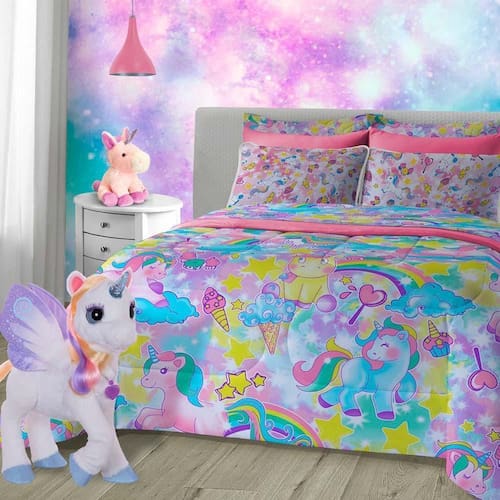 Jogo De Cama Infantil Solteiro 3 Peças Estampado Em Malha 100% Algodão Vivaldi Unicórnios Jogo de Cama Infantil Solteiro 3 Peças em Malha 100% AlgodãoUnicórnios fofos, um mundo doce, repleto de estrelas e seres encantados vão decorar o quarto das crianças de modo divertido. Além disso, um toque alegre é adicionado junto das chamadas Candy Colors cores doces e com o tie dye delicado. Fabricado em malha 100% algodão com fio penteado 30/1 120g/m, esse jogo conta com uma fronha estampada, um sobre lençol estampado e um lençol liso com elástico. Possui acabamento delicado, proporcionando harmonia, conforto e estilo para o quarto dos pequenos. Diferencial: Produzido com fibra natural 100% algodão garantindo um toque macio e dispensando a necessidade de passar.Contém:01 fronha de malha estampada 50x70cm.01 lençol de malha solteiro liso com elástico 88x188x30cm.01 sobre lençol solteiro em malha estampado 160x220cm.Linha Vivaldi da empresa Textil Sul Brasil. Composição:Fio 30/1 penteado.100% algodão.120g/m.Imagem meramente ilustrativa.