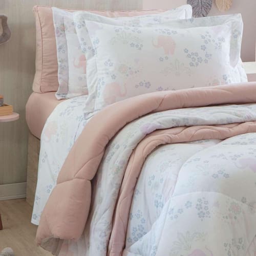 A imaginação das crianças ganha vida com o Jogo do Lençol Elefante Hathi Com tons suaves de rosa, lilás e azul, ele apresenta elefantes e delicadas flores em um design encantador, perfeito para um quarto cheio de alegria. E para um toque extra de brilho, os detalhes em glitter garantem ainda mais charme Feito em malha penteada 100% algodão, esse jogo oferece um toque macio e aconchegante, além de contar com tecnologia antipilling, evitando bolinhas e garantindo maior durabilidade. Lençol superior com dobra feita e estampa corrida Lençol inferior liso rosa cristal com elástico Fronha estampada com 4 abas Transforme a rotina do seu pequeno em um momento mágico Adquira agora na Madrigal Enxovais