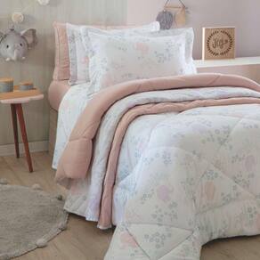 A imaginação das crianças ganha vida com o Jogo do Lençol Elefante Hathi Com tons suaves de rosa, lilás e azul, ele apresenta elefantes e delicadas flores em um design encantador, perfeito para um quarto cheio de alegria. E para um toque extra de brilho, os detalhes em glitter garantem ainda mais charme