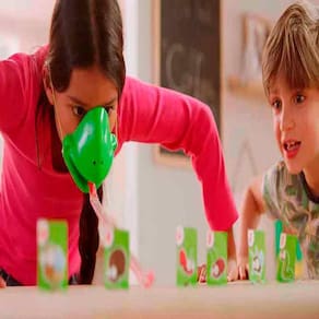 Marca: Multikids Modelo: BR426 Cor Principal: Verde Idade recomendada: A partir de 04 anos Dimensões: #8206;26.7 x 6 x 26.7 cm; Peso Produto: (kg) 0.043 Composição do Material: Plástico, Papel Certificações: Ce-bri/brics 00706-18 Garantia: 3 Meses Conteúdo da Embalagem: 2 Máscaras, 10 Alvos, 10 Cards, 2 Acessórios de Boca, 2 Linguas, 1 Manual De Instruções.