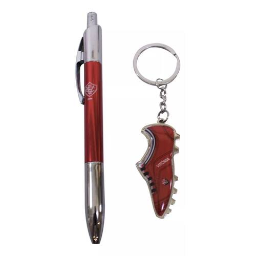 Estiloso jogo de caneta roller ball de metal com chaveiro de metal. Chaveiro em forma de chuteira. A caneta é toda customizada do Vitória. Perfeito para você que é torcedor deste grandioso time. Vem numa caixa de papel já pronta para presente. Material caneta: metal; Material chaveiro: metalCódigo: GST016-11-BPeso: 100gAltura: 17cmLargura: 8cmComprimento: 3cm