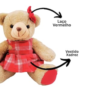 -01 Unidade Ursa Vestido Xadrez e Laço Vermelho