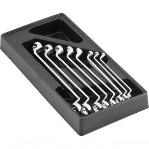 1 Jogo de chaves composto por: 1 chave estrela 6,0 mm x 7,0 mm, 1 chave estrela 8,0 mm x 9,0 mm, 1 chave estrela 10,0 mm x 11,0 mm, 1 chave estrela 12,0 mm x 13,0 mm, 1 chave estrela 14,0 mm x 15,0 mm, 1 chave estrela 16,0 mm x 17,0 mm, 1 chave estrela 18,0 mm x 19,0 mm e 1 chave estrela 21,0 mm x 23,0 mm. Acompanha 1 bandeja plástica.