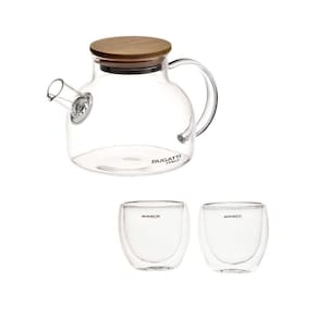 O Kit de bule de Vidro com Coador de Bico em Aço Inox e Tampa de Bambu Anti-bacteriano 500ml e Conjunto com 2 Copos de Chá 250ml da Bugatti é exclusivo, singular e elegante.