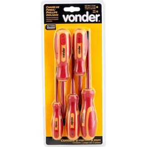 Conteúdo da embalagem: 1 Jogo Chave Fenda/Phillips Isolada 1000V 5 Peças LEC60900 Vonder