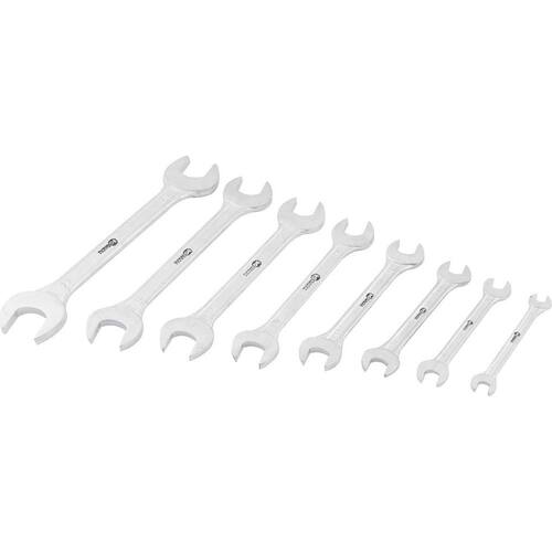 Conteúdo da embalagem1 Jogo de chaves fixas composto por um estojo plástico com 8 peças, sendo: 6 mm x 7 mm, 8 mm x 9 mm, 10 mm x 11 mm, 12 mm x 13 mm, 14 mm x 15 mm, 16 mm x 17 mm, 18 mm x 19 mm e 20 mm x 22 mmAplicações e dicas de usoIndicado para apertar e soltar porcas e parafusos sextavados. Nunca utilizar prolongadores sobre as chaves, pois isso aumentará o torque aplicado e diminuirá a vida útil da ferramenta. Uso leve.Destaques e diferenciaisCorpo das chaves com acabamento cromado fosco, proporcionando maior resistência contra oxidação/corrosão. Possui pontas estreitas que possibilitam o uso em locais de difícil acesso. DETALHES TÉCNICOS Material do corpo da chave: Aço carbono Acabamento da Chave: Cromado fosco