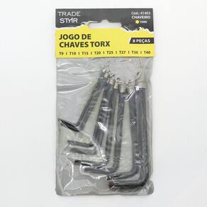 O kit é composto por:1 chave t-091 chave t-101 chave t-151 chave t-201 chave t-251 chave t-271 chave t-301 chave t-401 chaveiro para armazenarDetalhes importantesConfira algumas vantagens de comprar com a jjc ferramentas: Marca: Tradestar