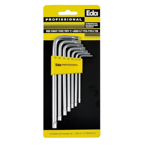 JOGO CHAVE TORX TIPO L COM FURO 7PÇS T10 A T40 EDA 8QG