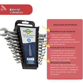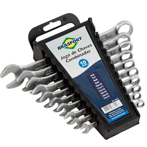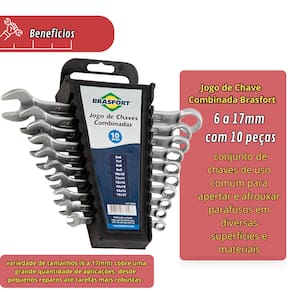 Distribuído por: Larkaza Utilidades Nome do Produto: Jogo de Chaves Combinadas Brasfort 10 Peças 6-17mm SKU: 48 Marca: Brasfort