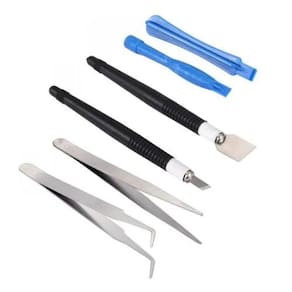 Acessórios: 01 Paleta De Abertura Triangulo Pequeno 01 Paleta De Abertura Triangulo Média 01 Pinça Reta 01 Pinça Reta L 01 Espátula Alavanca Plástica Estreita 01 Espátula Alavanca Plástica Média 01 Espátula Alavanca Metálica Larga 01 EstileteEmFormaDeBisturi