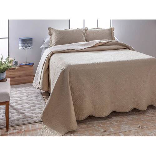 Jogo Colcha Cobre Leito Lisa Dupla Face Ultrasonic - Jolitex Bege Pastel - King -