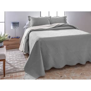 Jogo Colcha Cobre Leito Lisa Dupla Face Ultrasonic - Jolitex Cinza Prata - Casal -
