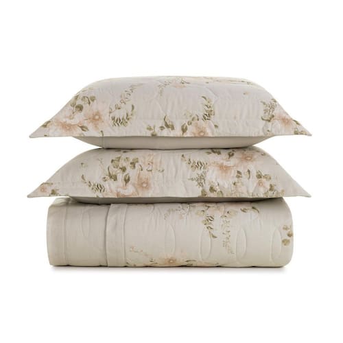 Romântico e delicado, o jogo de colcha com porta-travesseiro nice combina flores em tons suaves de bege, rosa e verde para criar um ambiente de calmaria e aconchego visual. A colcha dupla face alterna entre arranjos florais leves e uma padronagem irregular discreta, permitindo variações encantadoras na composição. Os dois porta-travesseiros matelassados seguem a mesma harmonia. Produzido com o puro conforto do algodão de fio penteado, oferece toque macio e visual leve para o dia a dia.
