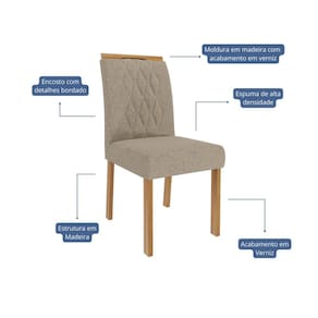 A cadeira Juliana representa a fusão perfeita entre elegância, conforto e praticidade. Sua estrutura é habilmente confeccionada em madeira, conferindo-lhe não apenas uma base sólida e durável, mas também um toque de rusticidade refinada que complementa diversos estilos de decoração. O assento e o encosto da cadeira são revestidos com estofamento de alta qualidade, proporcionando uma experiência de conforto excepcional. A inovação da Clarice também se estende ao seu sistema de facil de montagem. Acabamento: Verniz Acabamento da Estrutura: Verniz Almofada do assento: Fixa Ambiente Principal: Sala de Jantar codigo_ean: 7909903577516 Complexidade da Montagem: Média: pode ser montado por mais de uma pessoa e/ou necessite de maior conhecimento para montagem Cor: Madeira/Linho bege Cor do Produto: Madeira/Linho bege Escala de Brilho: Semi-Brilho Itens Inclusos: 2 Cadeiras Manual de Montagem e Instalação: https://product-hub-prd.madeiramadeira.com.br/892600/documents/c2228c64-61c5-4fa4-acc3-c68a62ba9cf5montagemcadeiralinhawoodii.pdf Material dos Pés: Madeira Necessita Montagem: Sim Origem do Produto: Nacional Peso: 18 kg Possui Rodízio: Não Recomendações de Uso, Manutenção e Limpeza: Para manter seu móvel novo por muito mais tempo, evite locais úmidos, mantenha-o distante de líquidos. Para limpá-lo com segurança utilize uma flanela seca sem produtos abrasivos Sistema de Montagem: Parafusos e cantoneiras Tipo de Assento: Fixo Tipo de Encosto: Fixo Tipo de Madeira Maciça: Tauari