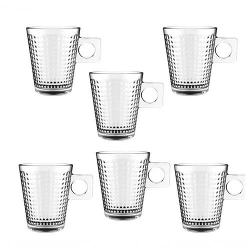 Esse jogo de 6 xícaras em vidro com a asa contemporânea é a nova tendência das mesas de café.