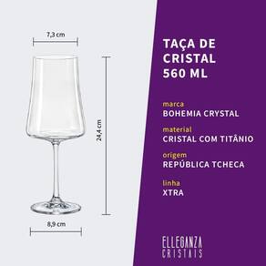 Jogo com 12 taças de cristal para água 560 ml linha xtra bohemia Jogo com 6 taças de cristal para água com 560 ml da linha xtra bohemia crystal Resistência titânio e cristal ecológico Detalhes do produto Material: cristal com titânio, mais resistente que o cristal comum Origem: produto da república tcheca Produto: taças de cristal Quantidade: 06 taças Capacidade: 560 ml cada taça Tamanho: 24,4 cm de altura, 7,3 cm de diâmetro de bocal e 8,9 cm de diâmetro de base Marca: bohemia crystal Linha: xtra Embalagem: os produtos são cuidadosamente envolvidos por plástico bolha e entregues na caixa do fabricante, inserida em outra caixa reforçada para assegurar a integridade do produto no transporte. Substituímos produtos danificados no transporte. Postamos nossos produtos nos correios de 01 a 02 dias úteis após a compra. Todos os nossos produtos acompanham a impressa. Trocas e devoluções Seguimos todas as normas vigentes no código de defesa do consumidor. Adicionalmente, trocamos produtos danificados no transporte. Informações relevantes 1. Já imaginou beber ou servir suas bebidas em taças ou copos de cristal com classe e sofisticação A elleganza cristais comercializa produtos com preços excepcionalmente abaixo do mercado, de qualidade assegurada pela marca tcheca bohemia crystal. Após anos de pesquisa e desenvolvimento, distribui em mais de 100 países cristal de espessura bem fina, livre de materiais tóxicos, com design e transparência incríveis. 2. Mas cristal não quebra facilmente Não. O cristal com titânio é muito mais resistente a impactos e mudanças de temperatura se comparado ao cristal comum, proporcionando maior segurança e comodidade no manuseio. A elleganza cristais trabalha apenas com produtos contendo titânio em sua composição, trazendo excelência e qualidade a preços imbatíveis. Sobre a bohemia crystal A bohemia crystal é líder global no mercado de cristais, com atuação em mais de 100 países. Fabrica seus produtos na república tcheca e realiza altos investimentos no desenvolvimento e melhoramento de seus produtos para garantir-lhes qualidade de ponta e ser referência global de qualidade e sofisticação. Eles foram os precursores do movimento que tornou o cristal um material ecológico, sem materiais tóxicos em sua composição. Também se destacam de outras marcas ao adicionar titânio para seus produtos mais especiais e assegurar resistência muito superior ao cristal comum. A marca oferece aos seus clientes uma vasta ampla variedade de produtos, desde utensílios domésticos a itens para indústria química. Cada linha de produto tem sua embalagem personalizada de acordo com suas características e tamanho.