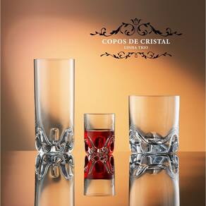 Jogo com 18 copos de cristal linha trio bohemia crystal Jogo com 18 copos de cristal linha trio bohemia crystal, sendo: 06 copos longos de água - 300 ml; 06 copos de whisky - 410 ml; 06 copos de shot - 60 ml. Linha trio Resistência titânio e cristal ecológico Detalhes do produto Material: cristal com titânio, mais resistente que o cristal comum Origem: produto da república tcheca Produto: copos de cristal Quantidade: 18 peças, sendo: 06 copos longos para água; 06 copos para whisky; 06 copos para shot. Capacidade: 06 copos longos para água com 300 ml cada copo; 06 copos para whisky com 410 ml cada copo; 06 copos para shot com 60 ml cada copo. Tamanho: Água longo: 14,5 cm de altura, 6,5 cm de diâmetro de bocal e 6,5 cm de diâmetro de base; Whisky: 9,5 cm de altura e 9 cm de diâmetro de bocal e 9 cm de diâmetro de base; Shot: 6,3 cm de altura e 4,8 cm de diâmetro de bocal e 4,8 cm de diâmetro de base. Marca: bohemia crystal Linha: trio Embalagem: os produtos são cuidadosamente envolvidos por plástico bolha e entregues na caixa do fabricante, inserida em outra caixa reforçada para assegurar a integridade do produto no transporte. Substituímos produtos danificados no transporte. Postamos nossos produtos nos correios de 01 a 02 após a compra. Todos os nossos produtos acompanham a impressa. Trocas e devoluções Seguimos todas as normas vigentes no código de defesa do consumidor. Informações relevantes 1. Já imaginou beber ou servir suas bebidas em taças ou copos de cristal com classe e sofisticação A elleganza cristais comercializa produtos com preços excepcionalmente abaixo do mercado, de qualidade assegurada pela marca tcheca bohemia crystal. Após anos de pesquisa e desenvolvimento, distribui em mais de 100 países cristal de espessura bem fina, livre de Cinza, com design e transparência incríveis. 2. Mas cristal não quebra facilmente Não. O cristal com titânio é muito mais resistente a impactos e mudanças de temperatura se comparado ao cristal comum, proporcionando maior segurança e comodidade no manuseio. A elleganza cristais trabalha apenas com produtos contendo titânio em sua composição, trazendo excelência e qualidade a preços imbatíveis. Sobre a bohemia crystal A bohemia crystal é líder global no mercado de cristais, com atuação em mais de 100 países. Fabrica seus produtos na república tcheca, realiza altos investimentos no desenvolvimento e melhoramento de seus produtos para garantir-lhes qualidade de ponta e ser referência global em sofisticação. Eles foram os precursores do movimento que tornou o cristal um material ecológico, sem Cinza em sua composição. Também se destacam de outras marcas ao adicionar titânio para seus produtos mais especiais e assegurar resistência muito superior ao convencional. A marca oferece aos seus clientes uma vasta gama de produtos, desde utensílios domésticos a itens para indústria química. Cada linha de produto tem sua embalagem personalizada de acordo com suas características e tamanho. Marca: Não Informado