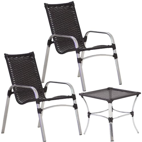 Jogo com 2 Cadeiras e Mesa Emily para Área, Jardim, Varanda, Piscina - Trama - Marrom Chocolate