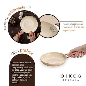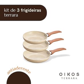 "conheça o kit com 3 frigideiras antiaderentes da coleção Terrara da Oikos!