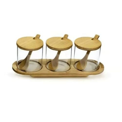 Jogo com 3 porta condimentos em bamboo 3 - casambiente Feito de vidro borossilicato e bambu, esse porta condimentos veio pra te conquistar Seu design é simples e extremamente bonito e ele conta com três peças e um suporte. O Porta Condimentos com 3 Peças Bambu vem com uma colher de cerâmica para te ajudar a pegar o conteúdo do pote e tem um tamanho ideal para guardar seus condimentos. Marca: Não Informado