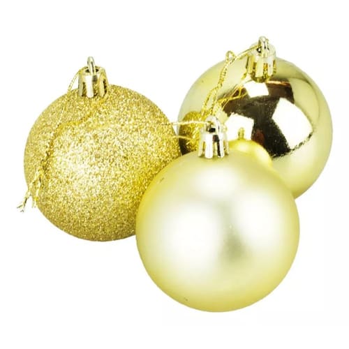 Jogo com 30 bolas natalinas na cor vermelho de 4cm de diâmetro. Dez bolas com revestimento mais denso, dez mais brilhantes e dez com revestimento de purpurina. Todas bolas acompanham cordão para pendurar. Material: plástico; Embalado em conjunto de 6 dentro de sacola plástica