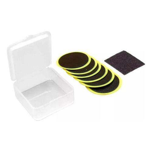 Especificações: - Composição: Polietileno - PE - Medida dos remendos: 25mm - Peso total estojo, remendos e lixa : 0,006g - Acompanha manual de instruções - Acompanha 1 lixa - Fácil e prático de usar - NÃO acompanha e NÃO necessita de cola