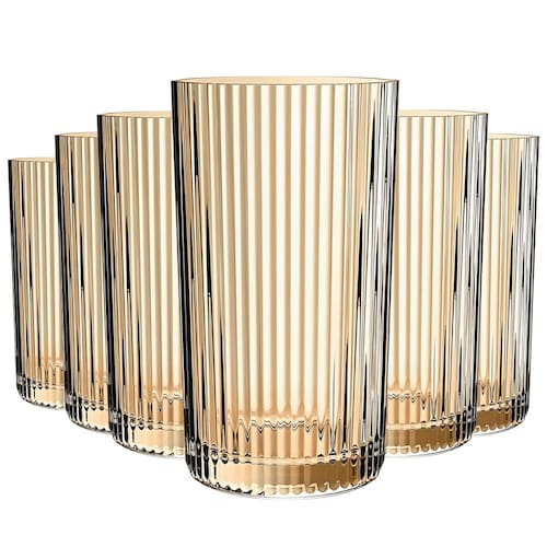 • Marca: Hauskraft • Linha: Graffiato • Conteúdo da Embalagem: 6 Copos • Capacidade: 420 ml • Material do produto: Vidro • Cor: Âmbar • Indicação de uso: água, suco e refrigerante