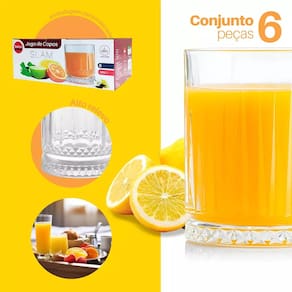Informações Adicionais: Validade: Indeterminada Capacidade: 380ml Tamanho Aproximado do copo: 10,2 x 8,3cm Ø Peso Aproximado de Cada Produto: 0,348G Tipo de Produto: Jogo de Copo Slam 380ml Cor: Transparente Composição: Vidro Pacote Contém: 6 Unidade Garantia: 90 dias contra defeito de fabricação Observação: As cores dos produtos podem sofrer variações em função da características do monitor e do ambiente durante a visualização.
