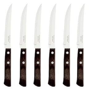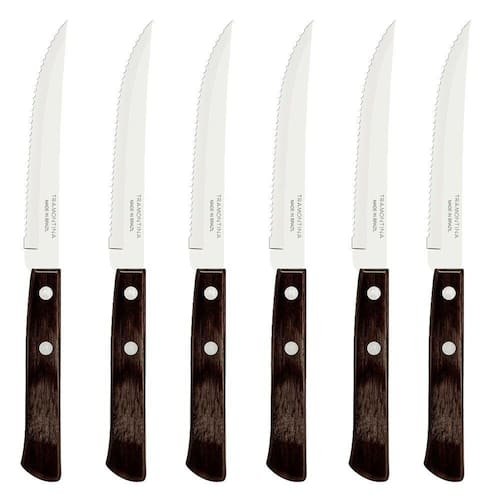 Com o Kit de Faca para Churrasco Tramontina com Lâmina em Aço Inox e Cabo em Madeira Polywood Castanho 5 polegadas 6 Peças seu churrasco no jantar ou almoço terá o charme e a qualidade que ele merece.