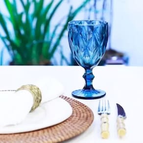 Jogo com 6 Taças Decoradas 300ml Cor: Azul Diamond Nome do Produto: Jogo com 6 Taças Decoradas 300ml