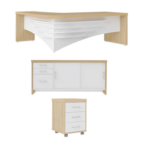 Esse conjunto de escritório é ideal para quem deseja inovar o ambiente de maneira simples e sofisticada, podendo ser para quarto, escritório ou outro espaço para home office.