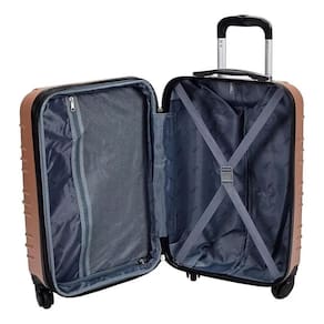 Detalhe mala de rodinha - marca: chx - fotos reais do produto - confeccionada: 100% abs - forro interno: poliéster - base do carrinho em alumínio - interno: compartimento principal com divisória de zíper e um com bolso de tela com zíper - externo: não possui bolso - fechamento principal com zíper - cadeado de segredo - estrutura rígida e arredondada - elástico para fixar as roupas - impermeabilidade, fácil de limpar e resistência - possui alça retrátil e alça fixa para transporte - quatro rodas com giro de 360 graus