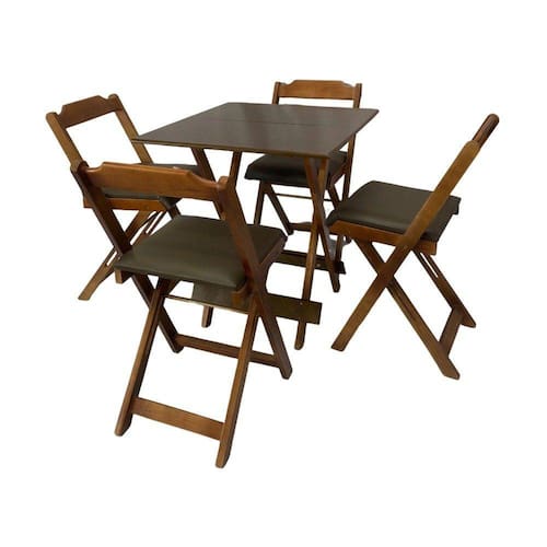 Jogo Conjunto de Mesa Dobrável 70x70cm Estofado Imbuia Marrom - Mesa 70x70 com 4 cadeiras Estofadas
