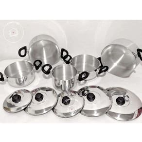 Jogo conjunto de panelas 5 pçs alumínio grosso brilho espelhado super resistente alta qualidade Cor: vermelho verniz Alumínio especial extra forte, aproximadamente 2 mm de espessura Resistentes, alumínio grosso Possuem alças seguras, com design anatômico e pegadores anti-térmicos de baquelite, trazendo segurança durante o preparo dos alimentos. Características: São 5 panelas caçarolas: 16 x 10 cm 18 x 08 cm 20 x 08 cm 22 x 10 cm 24 x 11 cm De diâmetro cada. Grandes, altas e bem espaçosas. Excelente acabamento interno e externo Maravilhoso brilho espelhado único Para você que ama panelas brilhantes Não amassa Não entorta Não enferruja