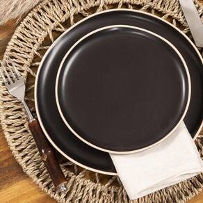 Jogo Copa E Cia 8 Peças Vivant Em Cerâmica Preto Jogo Copa e Cia 8 Peças Vivant em Cerâmica Preto - Características Gerais do Produto: - Composição: 100% Cerâmica. - Detalhes: Cerâmica com Efeito Mate (Fosco).; Design Exclusivo Copa&Cia.; As cores podem sofrer pequenas alterações de cor, variando de monitor para monitor.; Os objetos que ambientam as fotos não acompanham o produto.; As fotos produzidas são apenas como sugestão de uso com as demais peças da coleção.; Produzido na Tunísia - Cuidados: Lavar com Detergente Neutro e Esponja Macia.; Não Deixar de Molho.; Podem ser Colocados em Lava-Louças e Micro-Ondas.; Não utilizar solventes, abrasivos ou alvejantes. - Dimensões (cm): Prato Raso: 27cm ; Prato de Lanche: 20cm Acompanha o produto: - 4 Pratos Rasos4 Pratos de Sobremesa Garantia: - Sem Garantia
