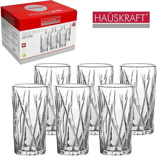 Jogo Copo Vidro Alto: Santorini Hauskraft - 6 peças 390ml Jogo de Copo de Vidro Alto Santorini Hauskraft - Conjunto com 6 Peças de 390ml Este conjunto de copos altos Santorini da Hauskraft oferece elegância e funcionalidade para suas bebidas favoritas. Características Principais: