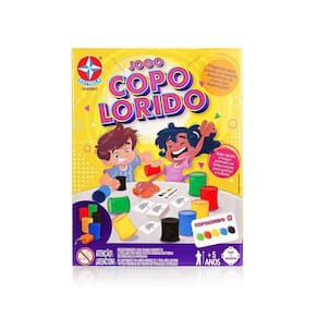 Jogo Copolorido - Brinquedos Estrela Teste a sua agilidade com o Copolorido! Os jogadores devem colocar seus copos na mesma sequência das cores da carta sorteada. O primeiro a terminar deve correr para tocar na bolsa sonora e gritar COPOLORIDO! Quem for o mais rápido ganha a carta e quem conseguir mais cartas ganha o jogo! Utiliza 2 pilhas 2 A (não incluídas). Idade recomendada (RECOMMENDED_AGE_GROUP): + 5 anos | Formato: Físico | Nome do jogo de tabuleiro: Copolorido | Código Inmetro: 007 595 / 2021 Ean: 7896027559514