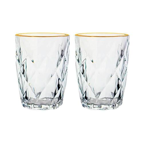 Conjunto de Copos de Vidro 2 peças Transparente Diamond Fio de Ouro 270ml - Lyor
