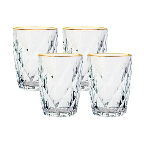 Jogo De Copos De Vidro Diamond Fio De Ouro 270Ml 4 Peças - Lyor 5256/4 Conjunto de Copos de Vidro 4 peças Transparente Diamond Fio de Ouro 270ml - Lyor