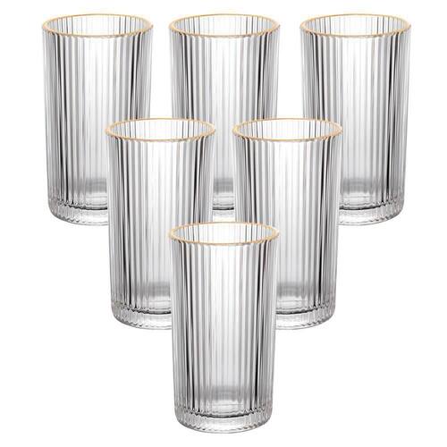 Jogo De Copos De Vidro Graffiato Fio De Ouro Long Drink 420Ml 6 Peças - Hauskraft Cplg054/Gd Conjunto de Copos De Vidro Graffiato Fio de Ouro 6 peças Transparente - Hauskraft