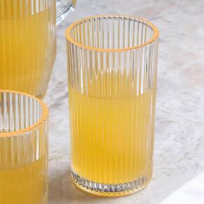 Os Copos Graffiato Fio de Ouro da Hauskraft são produzidos em vidro, com desenhos em relevo listrados e borda dourada para você servir deliciosas bebidas com mais praticidade e requinte. Seu design minimalista, atemporal e elegante permite composições com outros itens em sua mesa ou cristaleira.