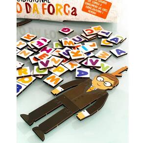 O tradicional jogo da forca está presente na infância de muitas gerações. é perfeito para dois jogadores. Cada um,com suas peças de madeira, monta uma palavra sobre um tema pré estabelecido. À medida que alguém erra, uma parte do corpo vai sendo destinada para formar a forca. Ganha quem conseguir descobrir primeiro a palavra do oponente e assim escapar do enforcamento. Funciona como um exercício cerebral, mas também auxilia na alfabetização, criatividade e no desenvolvimento da competição saudável.