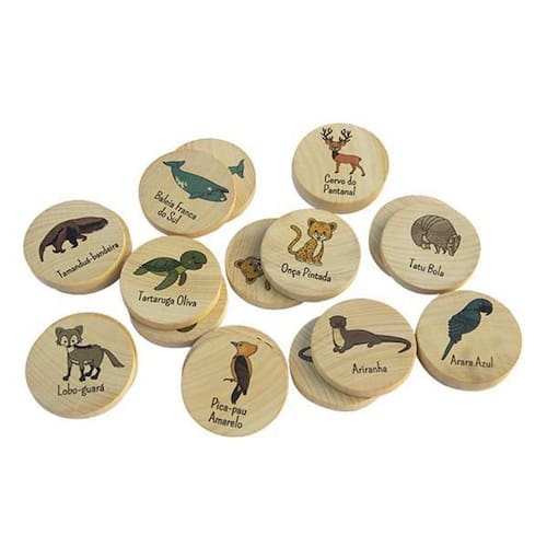 Jogo Da Memória Em Madeira - Animais Brasileiros Em Extinção, Da Fábrika Dos Sonhos - Cód. Fs45 Brinquedo de madeira Jogo da Memória - Animais Brasileiros em Extinção.