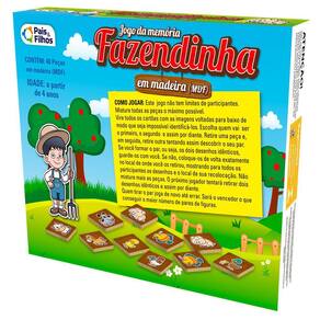 Jogo da Memória Fazendinha em Madeira Educativo Pedagógico