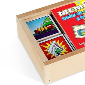 Jogo da Memória - Meios de Comunicação e Transporte - 40 peças - Madeira - 1040 - Carlu O jogo da memória facilita a aprendizagem do raciocínio lógico, concentração, noção espacial e memória de curto prazo, além de ser uma ótima ferramenta pedagógica quando aliado a diferentes temas e disciplinas. Confeccionado em M.D.F. 20 pares totalizando 40 peças de 5 x 5 cm cada, serigrafadas em policromia ultravioleta atóxica. Embalagem: Caixa de madeira com tampa serigrafada medindo 12,5 x 12,5 x 5 cm cada. Lacrada com película de P.V.C. Encolhível. Idade: A partir de 4 anos. Material: M.D.F. Ref.: 1040. Conteúdo da embalagem: 40 peças Animais e Filhotes. Medidas do produto: C x A x L 17 x 17 x 4,5 cm. Medidas da embalagem: C x A x L 17 x 17 x 4,5 cm. Peso aproximado do produto: 300 gramas. Embalagem: caixa de papelão. Prazo de garantia: 03 meses de garantia legal. Observe atentamente a idade recomendada para o brinquedo. Pode conter partes pequenas que podem ser engolidas e perigosas. Fotos ilustrativas as cores e modelos podem sofrer alterações sem aviso prévio. A indústria Carlu Brinquedos nasceu de um sonho. Sonho de uma professora, dinâmica, disposta e com a ideia fixa de vencer e vender algo que ela mesma pudesse criar e produzir. INMETRO CE-BRI/ICEPEX-N 00934-29 NBR NM 300/2004 Ean: 7898237851112