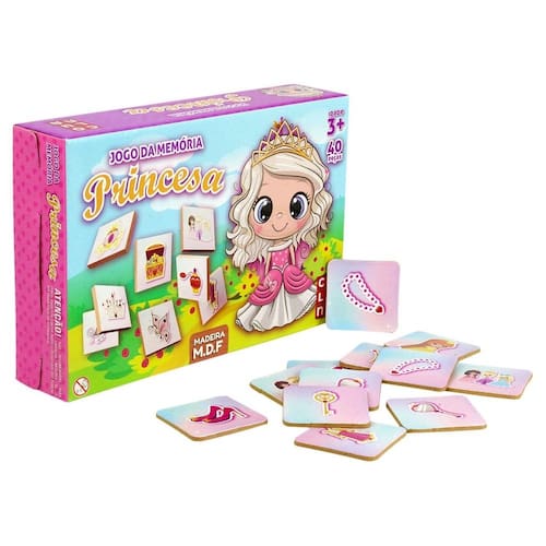 Jogo da Memória Princesas com 40 Peças EM M - Jogo da memória infantil com tema Princesas, sendo 20 pares de cartas ilustradas com desenho lúdico;\nEspecificações:\nMarca : GALA\nTipo de material : Madeira\nCores ou Estampa : Color\nDimensões do Produto : 16 X 24 X 5 CM\nDimensões da Embalagem : 16 X 24 X 5 CM\nPeso Bruto (Gramas) : 0.315 Marca: Não Informado