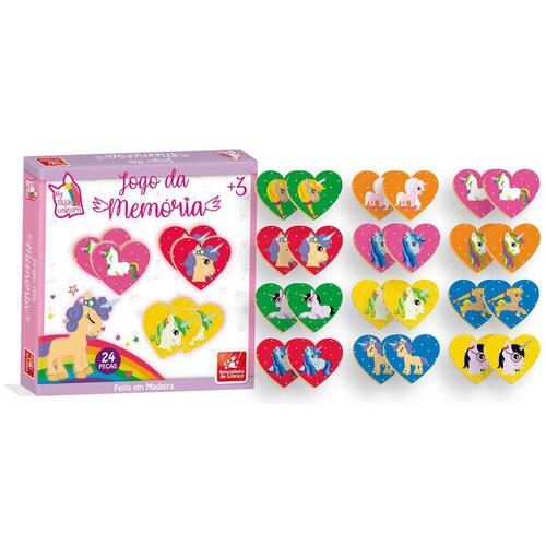 Jogo Da Memória Unicórnio 24 Peças Em MadeiraJogo Da Memória Unicórnio Em Madeira 0947 Brincadeira De Criança.Treine sua memóriaEste jogo auxilia no raciocínio lógico e concentração.Contém 24 peças em madeira.A partir de 3 anos de idade.Dimensões embalagem: 4x22x22 centímetros.Material: MadeiraMarca: brincadeira de criança.Certificado do INMETRO: CE-BRI/OCP - N 00013-01 NM 300/2002