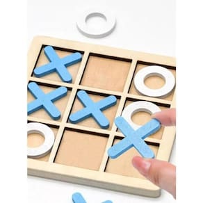 Jogo da Velha em Madeira. Tabuleiro para diversão em família. Este jogo foi criado com um tabuleiro de madeira de alta qualidade, adicionando um toque rústico e elegante ao seu design. O tabuleiro é composto por uma grade 3x3, formada por nove espaços em que os jogadores podem posicionar suas peças. Cada jogador recebe um conjunto de peças distintas, geralmente em forma de círculos e cruzes, que representam suas jogadas. O objetivo do jogo é formar uma linha reta com três peças da mesma forma horizontal, vertical ou diagonal antes do oponente. A jogabilidade é simples e intuitiva. Os jogadores alternam suas jogadas, colocando suas peças em qualquer espaço vazio do tabuleiro. O desafio está em planejar estrategicamente os movimentos, tentando bloquear o avanço do adversário enquanto busca a oportunidade de criar sua própria linha vencedora. Além de ser divertido, também incentiva o desenvolvimento do pensamento estratégico, raciocínio lógico e tomada de decisões. Com sua estética em madeira, este jogo adiciona um toque de nostalgia e charme a qualquer ambiente. É uma ótima opção para presentear alguém especial ou como uma adição elegante à sua coleção de jogos de tabuleiro