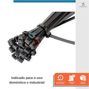 A Abraçadeira Nylon é ideal para o uso doméstico e industrial; prender fios, cabos, mangueiras, fixação de chicotes, lacre de embalagens, cabos de redes e outros. Fabricada em nylon é resistente à água e óleo, temperatura, intempéries climáticas e estabilidade dimensional mesmo sob o efeito do calor.